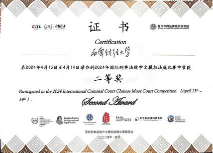 2024年4月13日至14日,2024年国际刑事法院中文模拟法庭比赛(简称“ICC中文赛”)在北京香山饭店成功举办。本次比赛吸引了来自北京大学国际太阳网集团tcy8722、清华大学、北京师范大学、上海交通大学等众多国内外知名高校参与。公司代表队在激烈的竞争中脱颖而出,荣获全国二等奖。