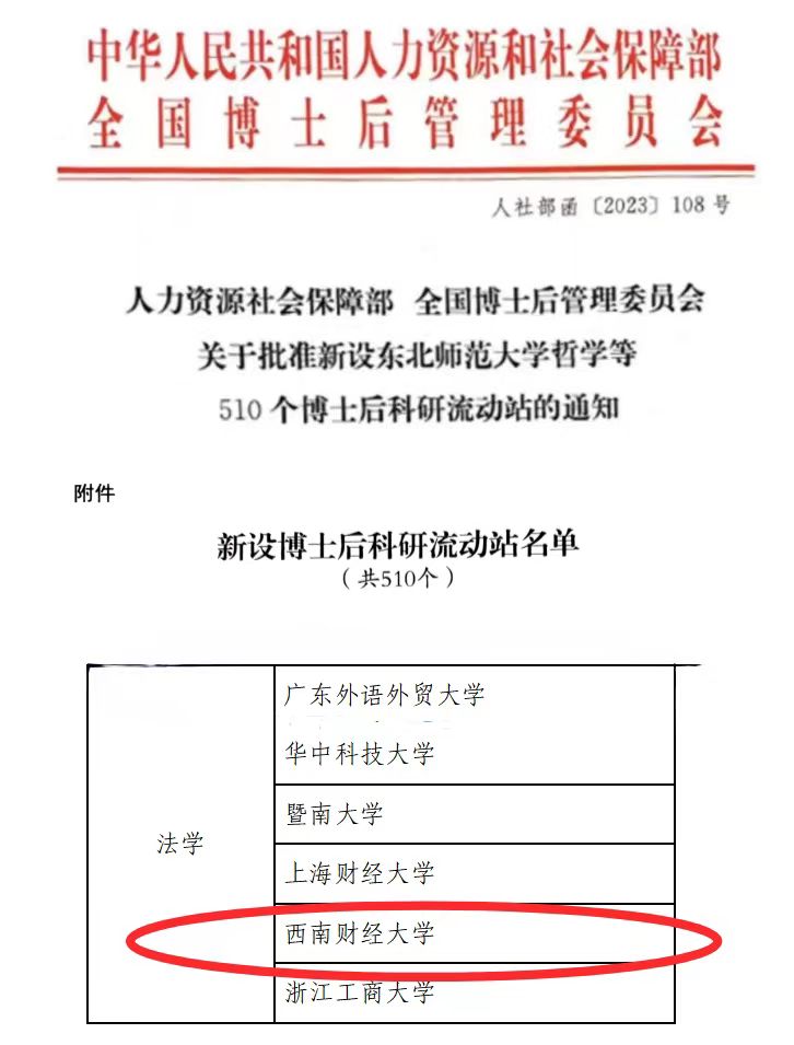 近日,人力资源和社会保障部、全国博士后管理委员会联合下发《关于批准设立东北师范大学哲学等510个博士后科研流动站的通知》(人社部函〔2023〕108号),公司获批设立法学一级学科博士后科研流动站。这是继2010年公司法学学科获批一级学科博士点后,在学科高层次平台建设上取得的又一突破性成就。至此,太阳网集团tcy8722已成为从本科生、硕士生、博士生到博士后的全流程、全方位法学人才培养的授权单位。