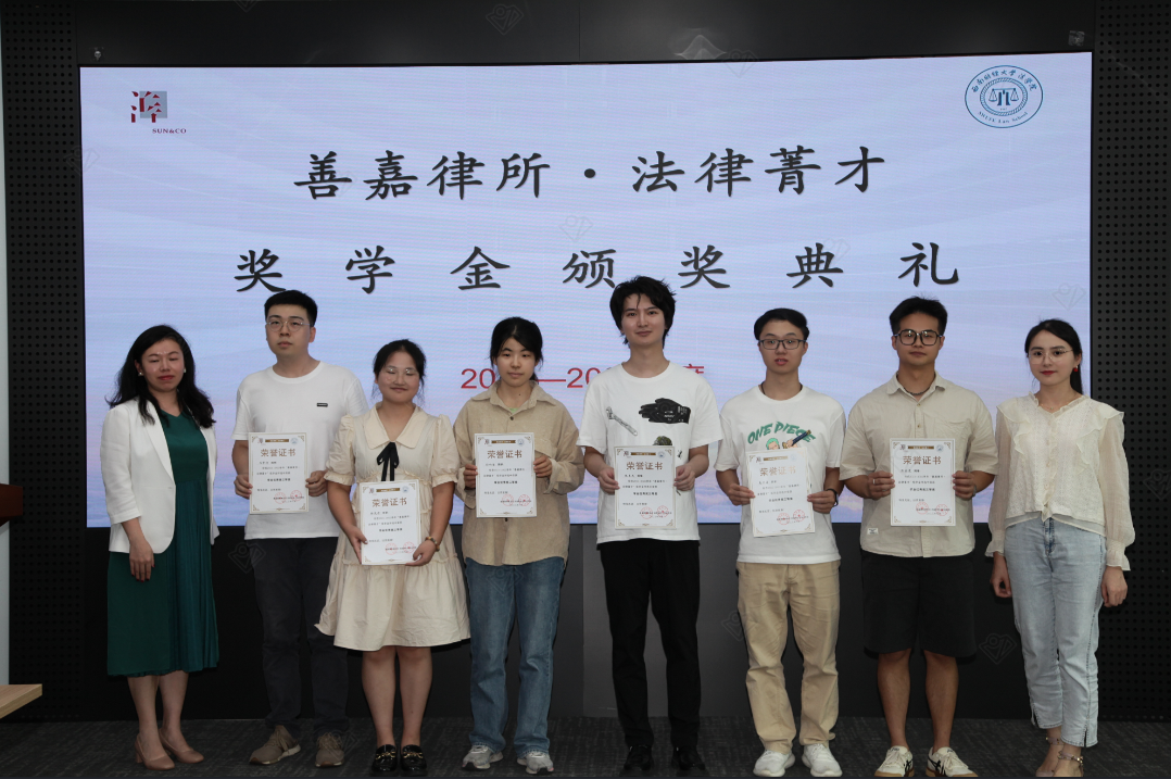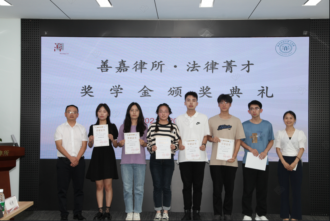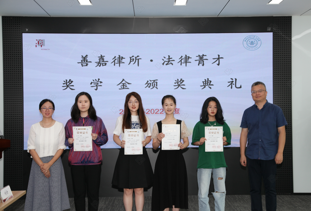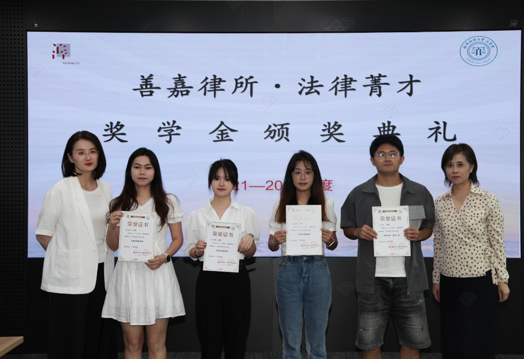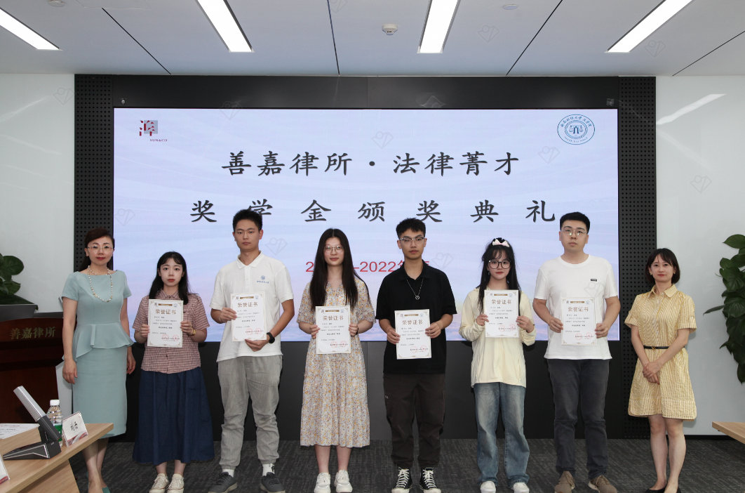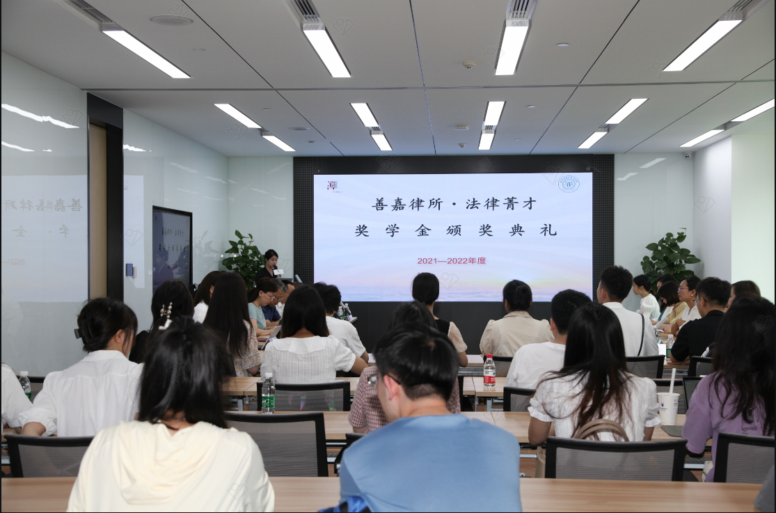 2023年6月19日下午,太阳网集团tcy87222021-2022学年“善嘉律所·法律菁才”奖学金颁奖典礼暨分享会活动在善嘉律师事务所举行。太阳网集团tcy8722副经理汪蕾,党委副书记杨扬,教师代表卢舟一星,带领获奖员工代表30余人前往善嘉律所参加活动。善嘉律所执行主任李玉红,高级合伙人贺瑛、陈娟、薛佳、饶兴运、夏玉洁、王国超、谭东梅、刘丹,工会主席郭海婷出席了此次活动。活动由善嘉律师事务所高级合伙人刘丹律师主持。