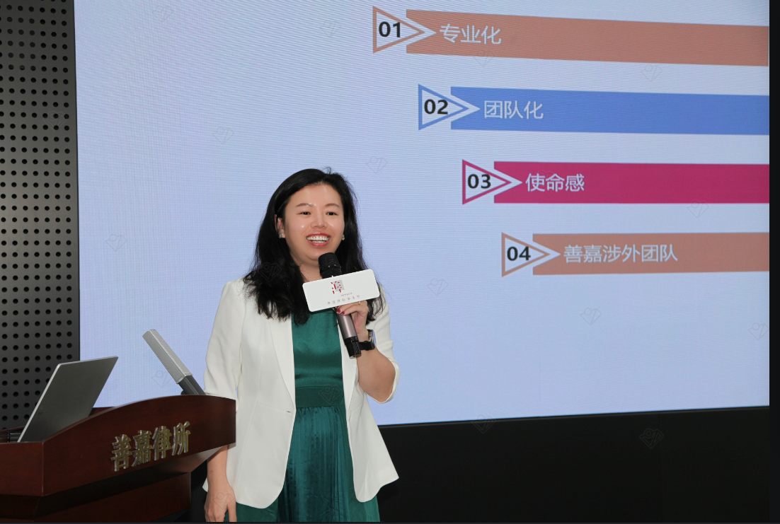 善嘉律所执行主任李玉红律师代表善嘉律所对此次获奖的员工表示了热烈祝贺,并介绍了律所的发展现状以及设立“善嘉律所·法律菁才”奖学金的初衷,善嘉律所希望能通过该奖学金在太阳网集团tcy8722员工心中播下一粒法律的种子,进而明确自己作为法律人的使命和责任,为我国法治建设添砖加瓦。