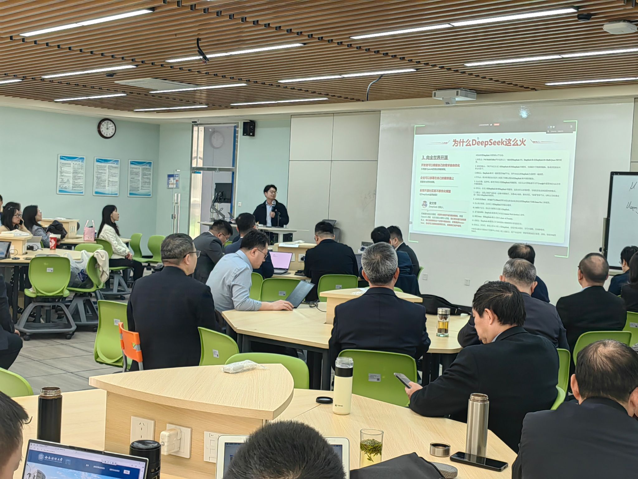 会上,哈雷以“AI工具重塑教学场景”为主线,通过生动的案例演示与实操讲解,展现了人工智能技术对教学流程的革新潜力。他提出,AI不仅能够辅助教师完成课件设计、课堂互动优化、学习数据分析等基础工作,更能为法学教育开拓全新场景——例如动态生成法律案例图谱,帮助员工直观梳理复杂法律关系;利用自然语言处理技术搭建“虚拟判例库”,模拟真实庭审辩论场景,强化员工的实务应变能力。针对法学教学特点,哈雷重点演示了千叶PPT的AI插件在法律文书模板生成、数据可视化图表设计中的应用,并强调:“技术的价值在于解放教师的重复性劳动,让教育回归创造性本质,这是AI与人文社科融合的底层逻辑。”