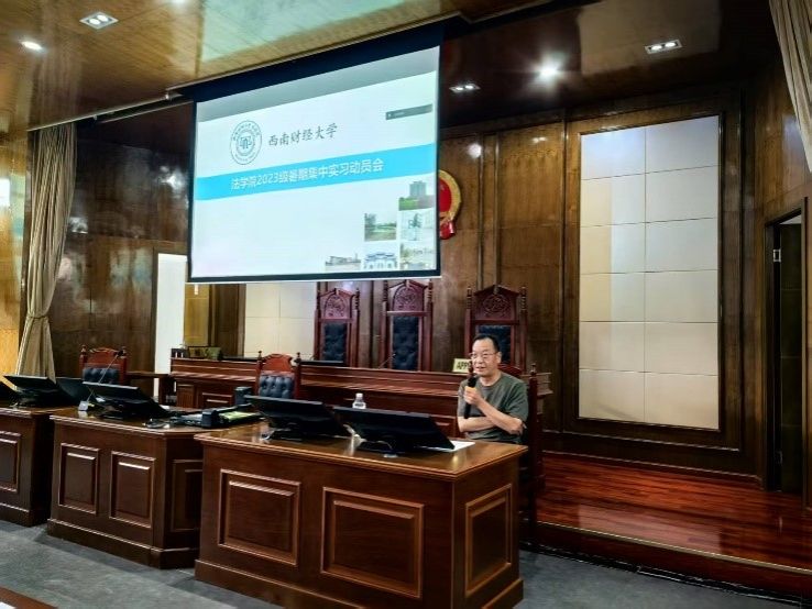 7月6日下午,实习动员大会在公司模拟法庭举行。会议由副经理汪蕾主持,实习负责人张霄、2023级本科生辅导员韦章琳及全体2023级本科生参加。此次公司暑期专业集中实习共与18家法律实务单位建立合作关系,实习单位涵盖法院、检察院等司法机关及成都市多家知名律师事务所,为法科学子提供了多元化的实践平台。