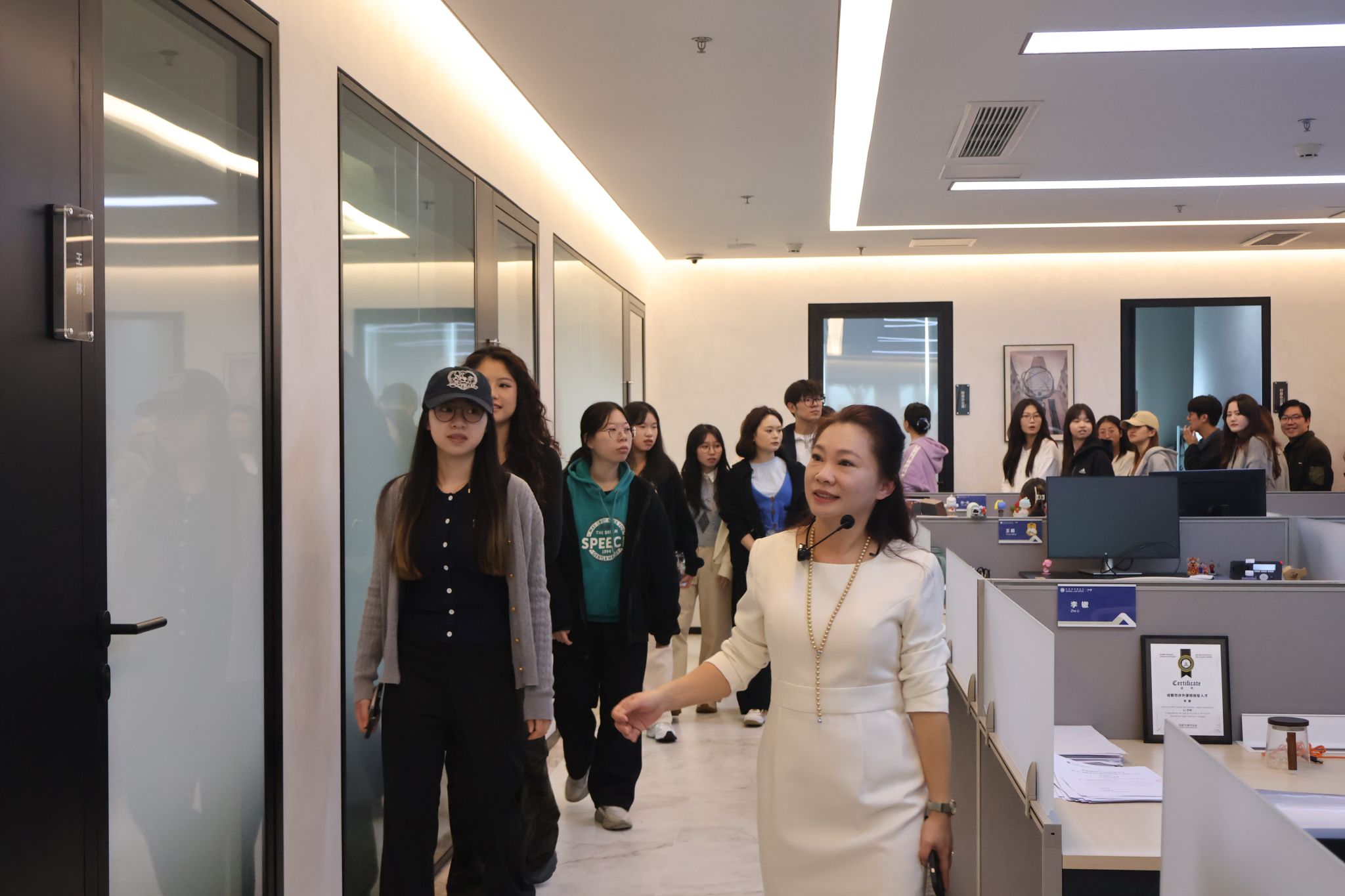 在“开放日活动”环节,员工们首先参观了北京环球(成都)律师事务所位于天府国际金融中心的现代化办公环境。在曹晴的引导下,通过亲身体验律所的工作氛围与文化,让员工们对律所的运作模式与专业环境有了直观的认识。