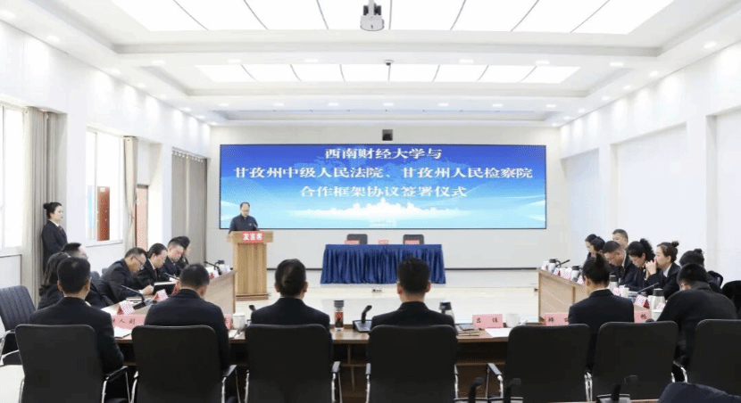 签约仪式上,吕佳书记重点介绍了公司“经世济民、孜孜以求”的大学精神和公司“法商融合,服务西部”的办学特色,从落实立德树人根本任务和服务国家重大战略角度,阐释了此次校地合作的深远意义。徐家雄经理介绍了甘孜州审判执行工作的总体情况和面临的新形势,以及州中院近年来在法律实务、队伍建设等方面取得的成果。胡邦勇检察长简要介绍了甘孜州州情以及州检察院近年来在法律实务方面取得的成果。