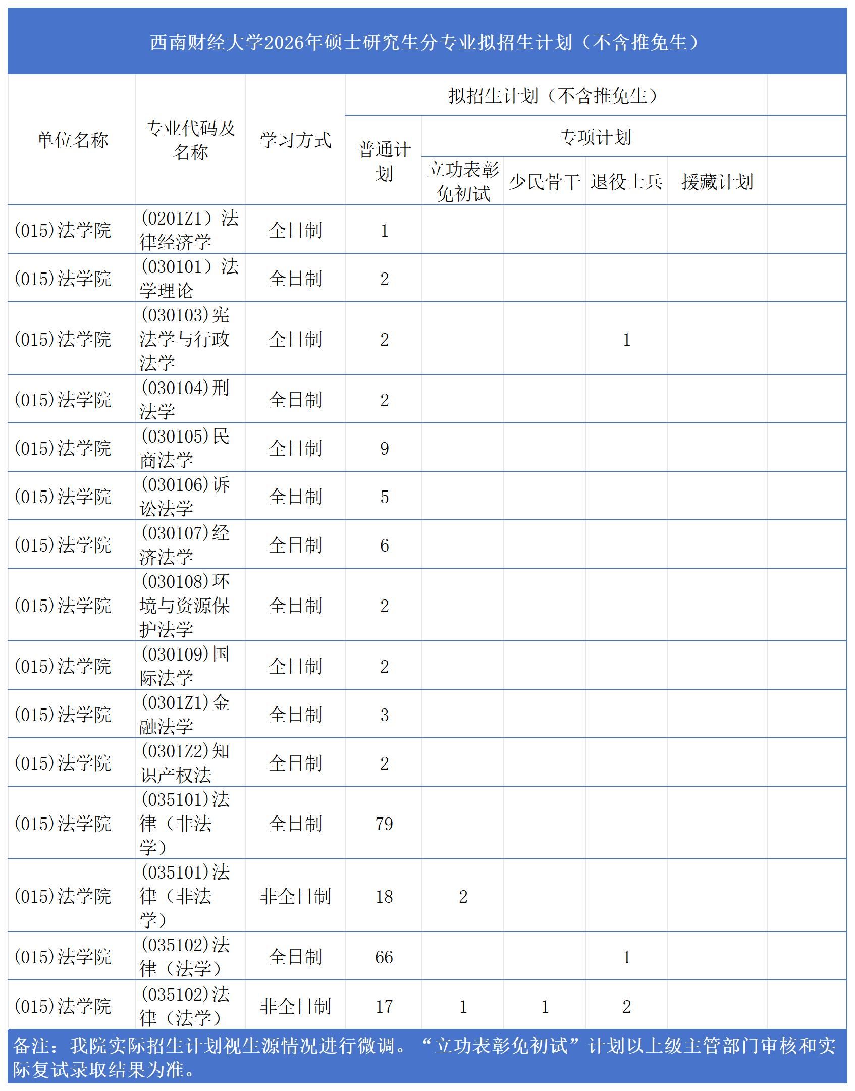 (二)各专业拟招生计划数