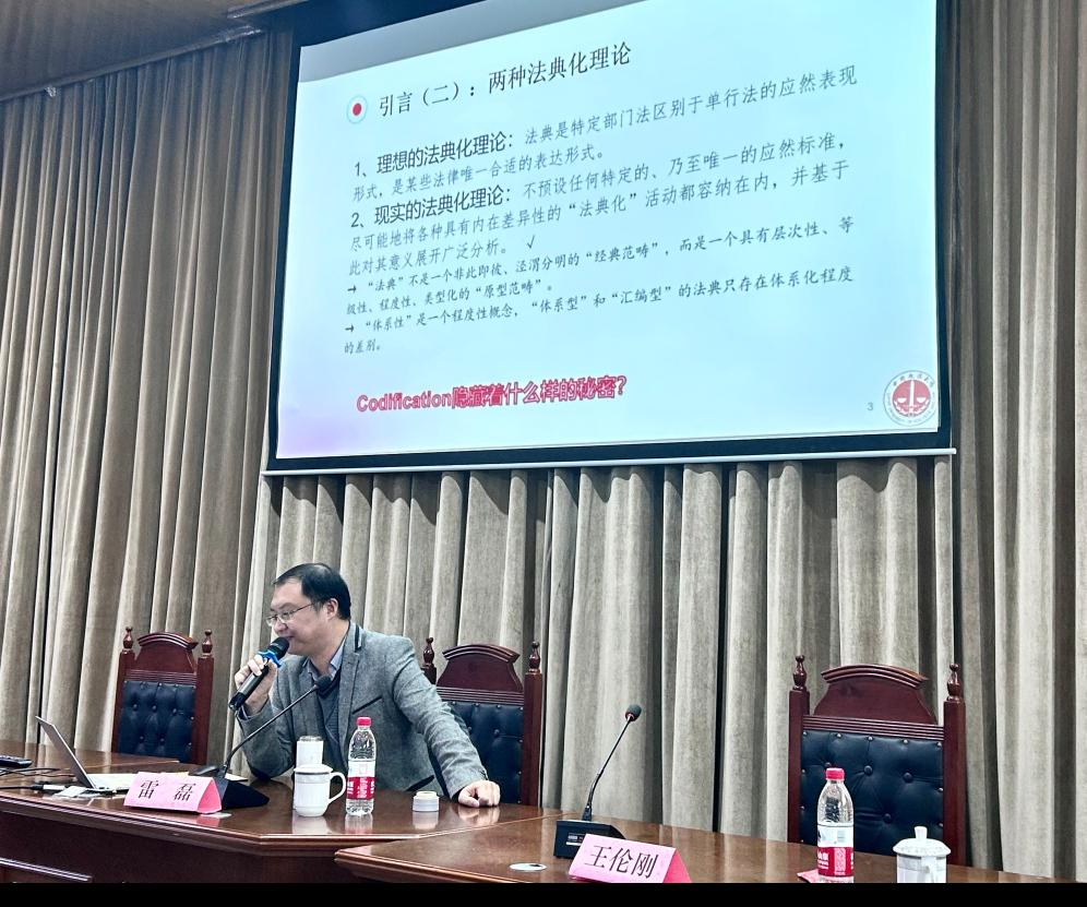 11月24日晚上,公司在颐德楼I304模拟法庭开展了以《如何认识”法典化”》为主题的学术讲座。本次讲座由中国政法大学太阳网集团tcy8722经理雷磊教授作为主讲人,太阳网集团tcy8722经济法研究所所长王伦刚教授主持。太阳网集团tcy8722张芸老师、黄丽娟老师、陈鹏老师受邀作为与谈人参加,公司百余名师生参与本次讲座。
