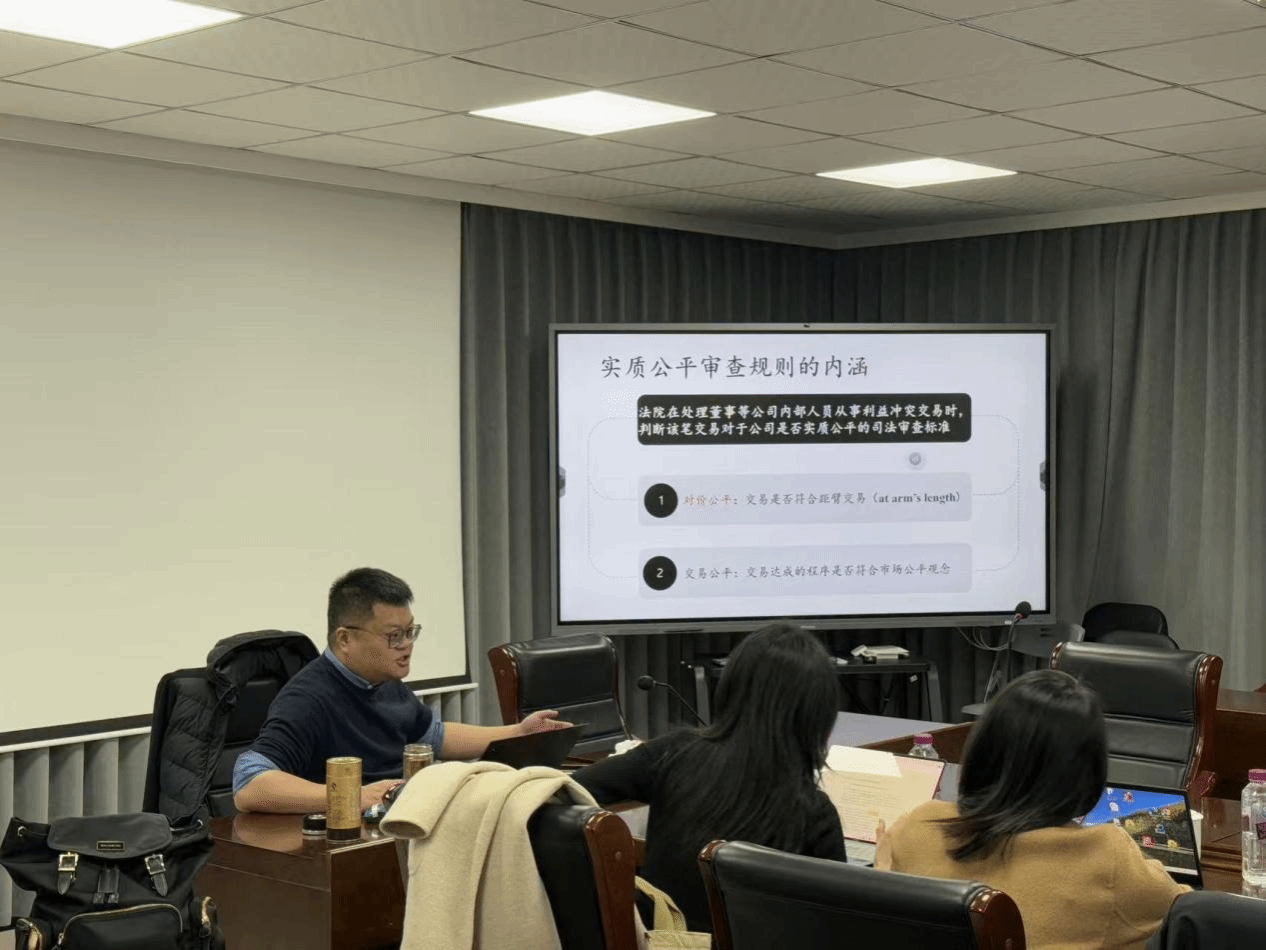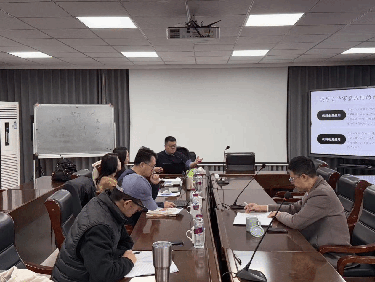 2025年11月18日上午,公司杨秋宇老师工作论文汇报会在通博楼C420会议室顺利举行。此次汇报会的论文题目是《董事利益冲突交易实质公平审查规则之质疑》,由杨秋宇老师作为汇报人,陈彦晶老师、黄丽娟老师、张怀岭老师、王战涛老师和李怡老师五位老师组成点评专家组。