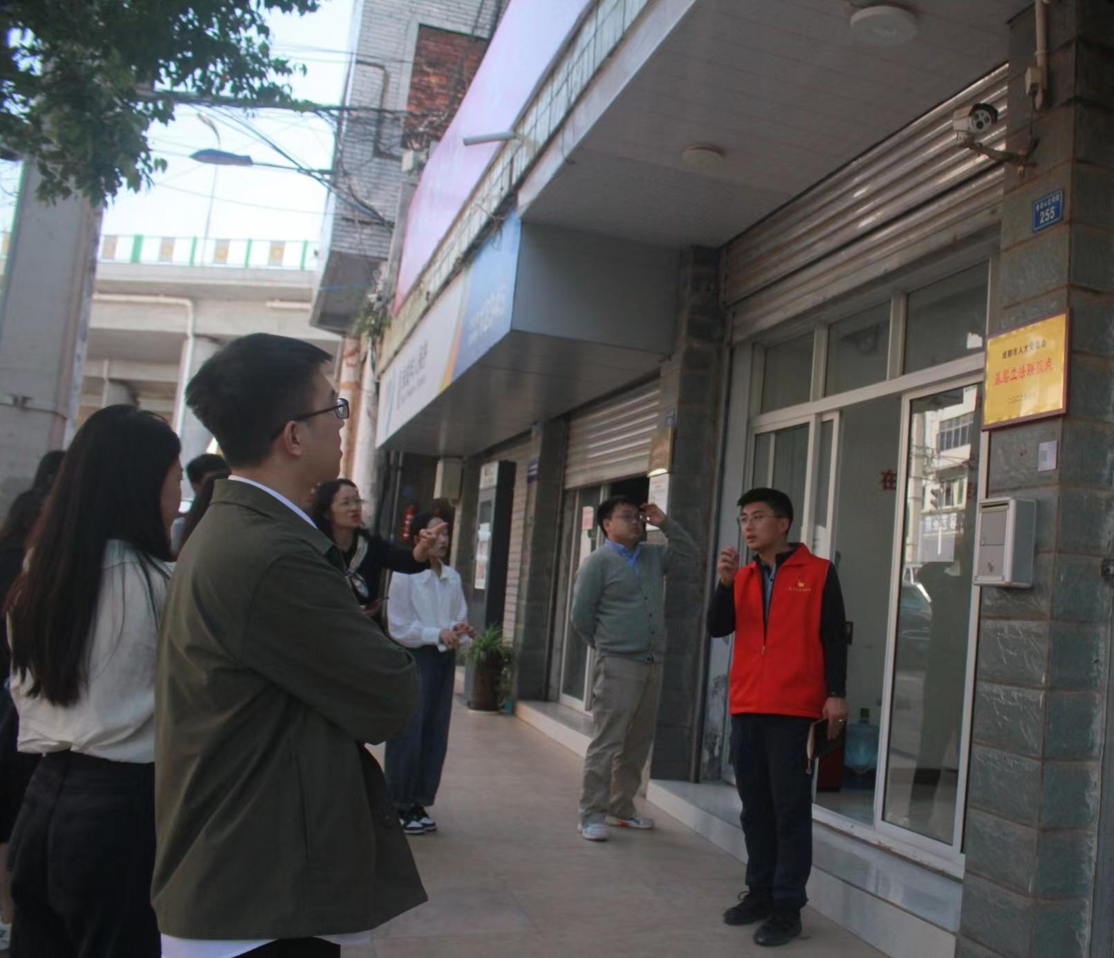 首先,调研团一行前往石盘街道白塔村村委会,开展了乡村治理调研和普法宣传活动。白塔村支部副书记付能兵和驻村干部万胜介绍了白塔村概况及村委会文化阵地建设、规划情况,并就农村集体经济组织立法的实践问题与师生进行了探讨。