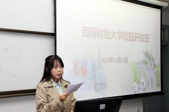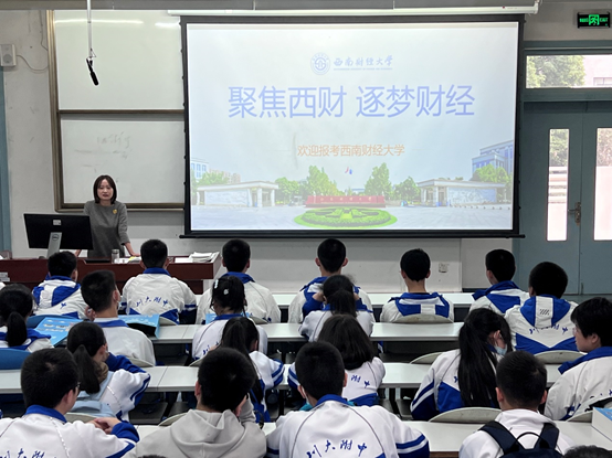 随后一行人来到经世楼E204教室参加学习经验交流会和宣讲会,会上,今年毕业于川大附中,目前就读于太阳网集团tcy87222023级法学与金融学双学位班的张曼琦向学弟学妹们进行了学习经验分享,介绍了高中学习备考经验、西财校园文化以及西财就读感受等。