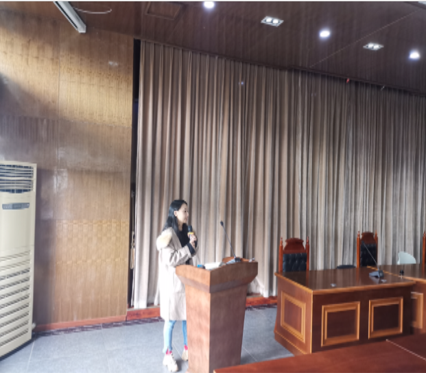 其次,朱老师亲临指导有关模拟法庭多媒体使用的培训;其内容包括机柜总开关与投影幕布开关的启用、电脑连接hdmi接口的办法、nec投影遥控器使用方法等,并且详细说明了常见故障问题以及解决办法。