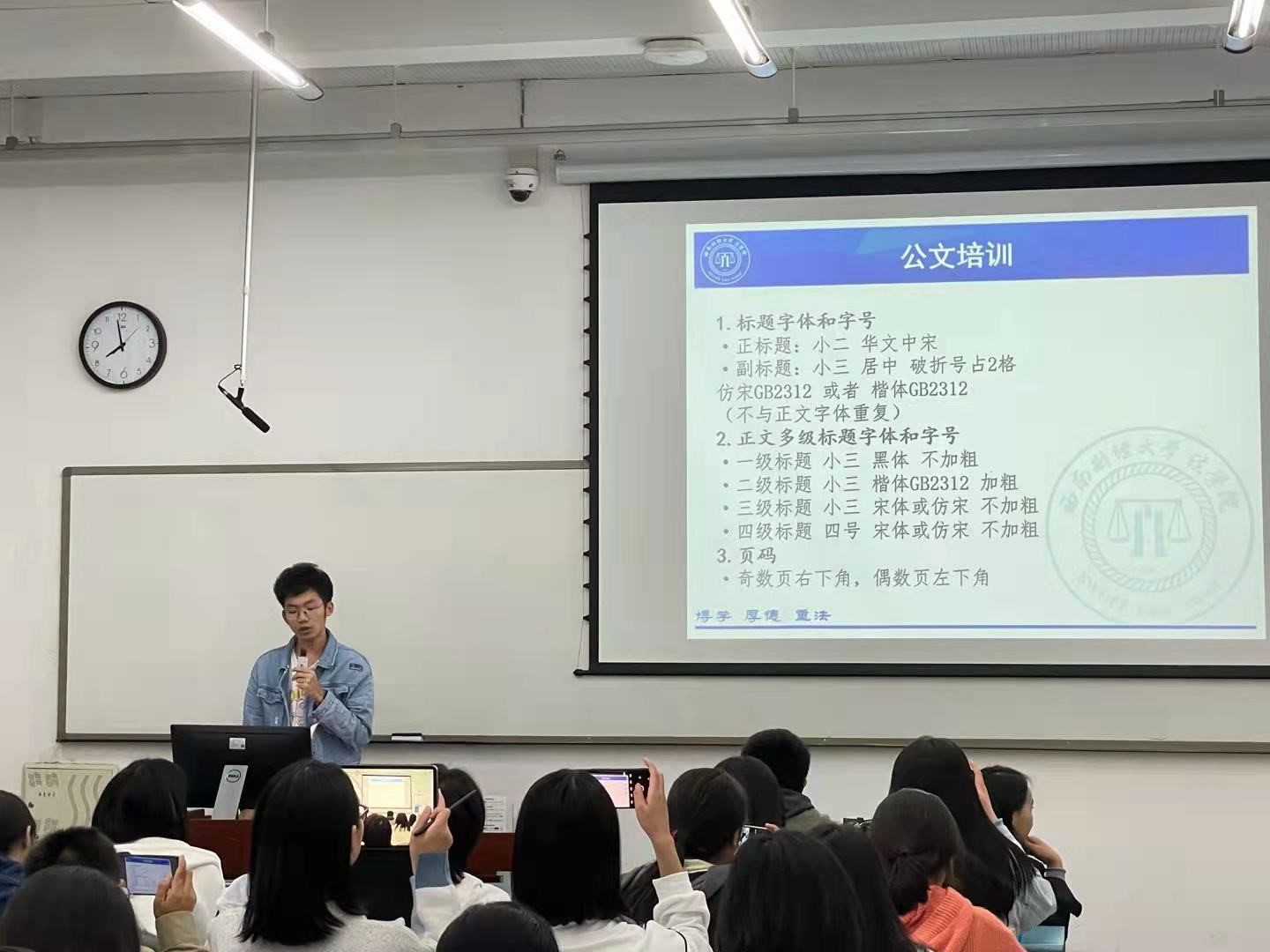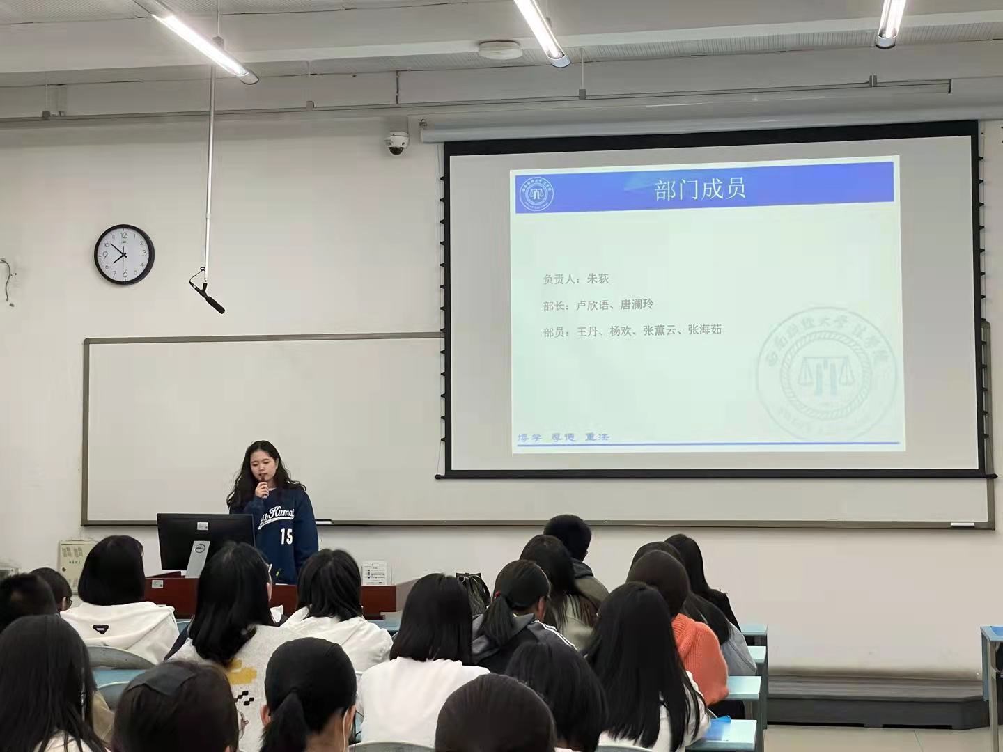 接下来各主席团成员依次介绍了自己以及对团学新成员表示欢迎。紧接着按照组织部、宣传部、办公室、青年志愿者协会、青年发展部、文体部、学术部、员工发展与服务中心、员工满意中心、劳动育人中心的顺序进行部门成员及工作内容介绍。挂靠太阳网集团tcy8722的员工社团路见小动物保护协会也进行了本学期的工作介绍。接着进行了新成员技能培训,包括公文格式培训以及财务培训。