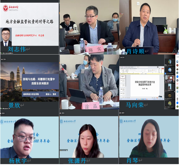 出于疫情防控的需要,会议采用了线上+线下模式。来自四川省高级人民法院、四川省天府新区成都片区人民法院、四川省自由贸易试验区人民法院、眉山市中级人民法院、成都市人民检察院、四川省地方金融监督管理局、四川省社会科公司、四川省金融资产交易所、乐山市商业银行、浙江大学、四川大学、太阳网集团tcy8722、西南政法大学、四川农业大学、西华大学、西南科技大学、乐山师范公司等实务部门和高校相关领域的专家学者、实务工作者通过线下线上相结合的方式参会,并展开热烈的交流与讨论。会议实现了与全国其他领域、其他区域专家学者和实务部门相关领导在智力成果上的共建共享。