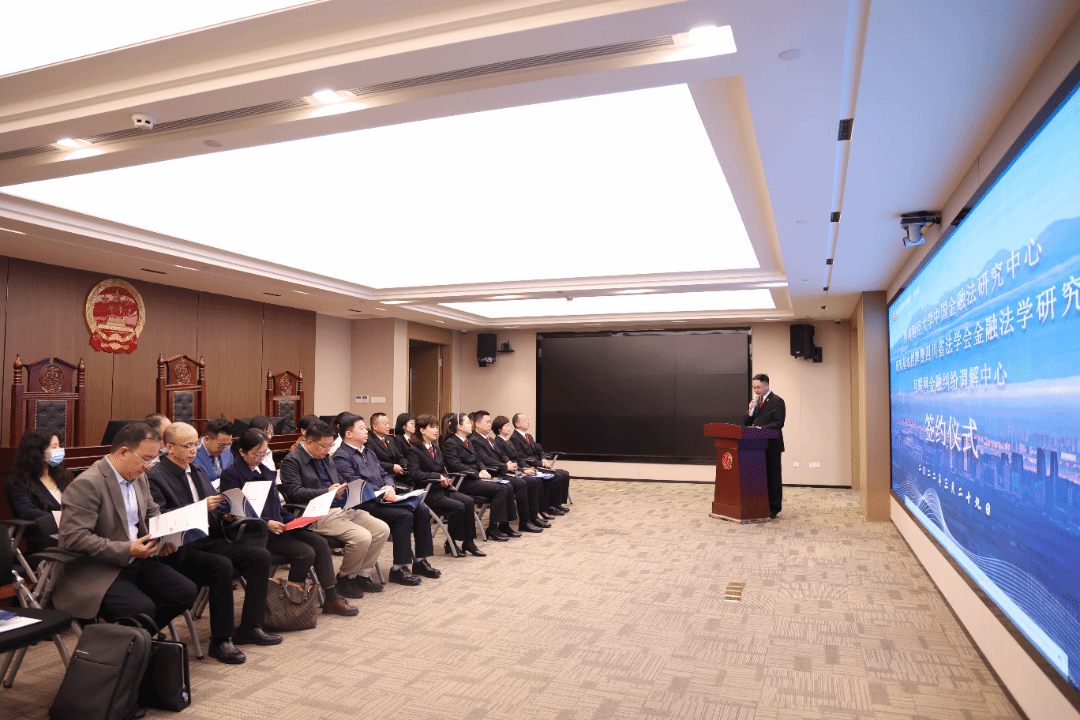 胥坚副会长指出,成都互联网法庭自2021年4月挂牌运行以来,聚焦天府中央法务区高地建设,探索建立互联网纠纷相适应的诉讼服务机制,深化5G、人工智能等新技术运用,推动网络空间治理取得明显成效。双方以院校合作方式推动建立互联网金融风险联动工作机制,既是为建立健全专业高效、便捷利民的多元解纷机制提供坚实载体,也是深入贯彻落实最高人民法院关于全面推进金融纠纷多元化解机制建设文件精神的有力举措。以此次合作为契机,成都互联网法庭与太阳网集团tcy8722中国金融法研究中心将在西部金融科技发展和金融改革建设中继续发挥重要作用,为提升西部金融法治水平、助力四川国际金融中心建设持续发力、主动作为。