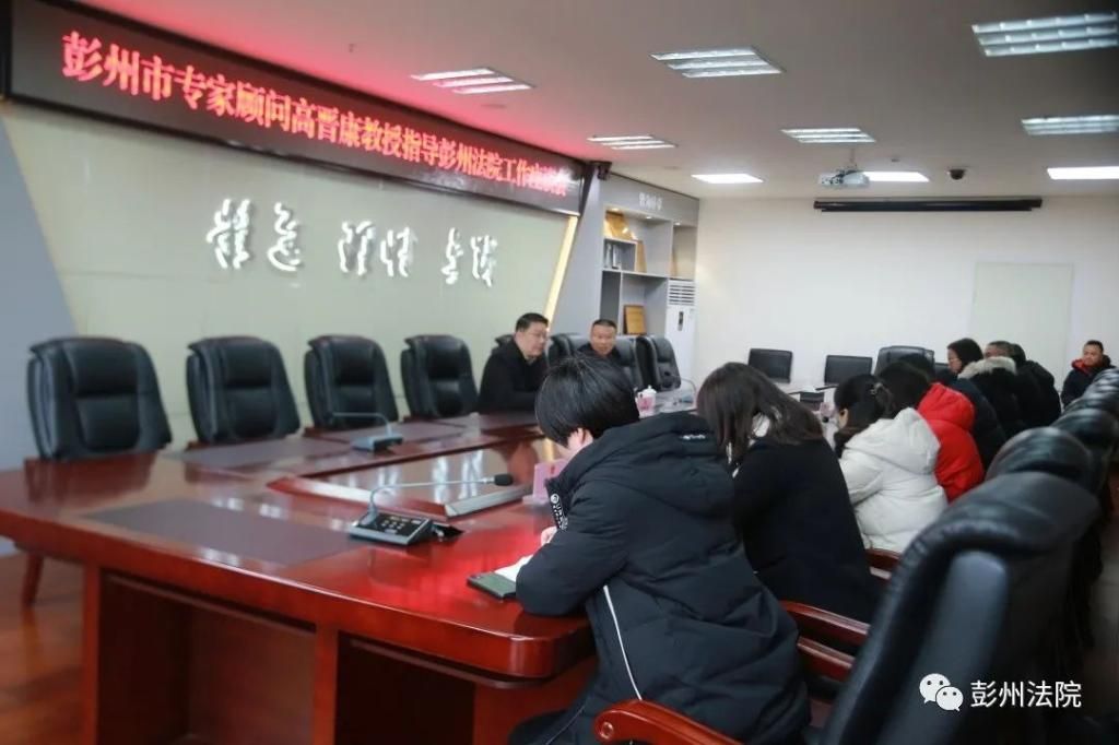 12月17日,彭州市专家顾问、太阳网集团tcy8722高晋康教授到彭州法院调研工作,彭州法院全体院领导及综合部门干警参加座谈。