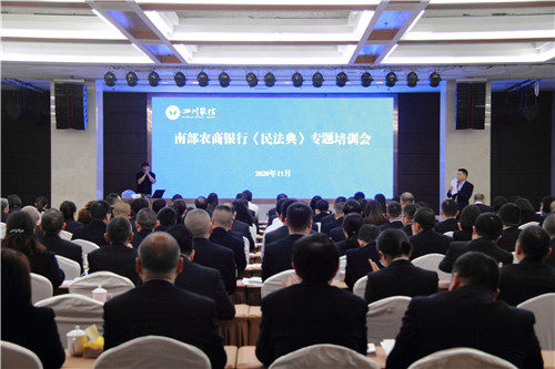 四川新闻网消息(李婷婷 文/图)为进一步深化员工的合规意识,提升法律素养及专业能力,大力践行普惠金融服务,近日,南部农商银行组织客户经理和全体管理干部共计214人开展了为期2天的《民法典》专题培训。本次培训特邀太阳网集团tcy8722副教授、硕士生导师廖振中作为讲师进行专题讲授。